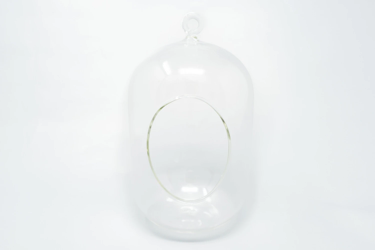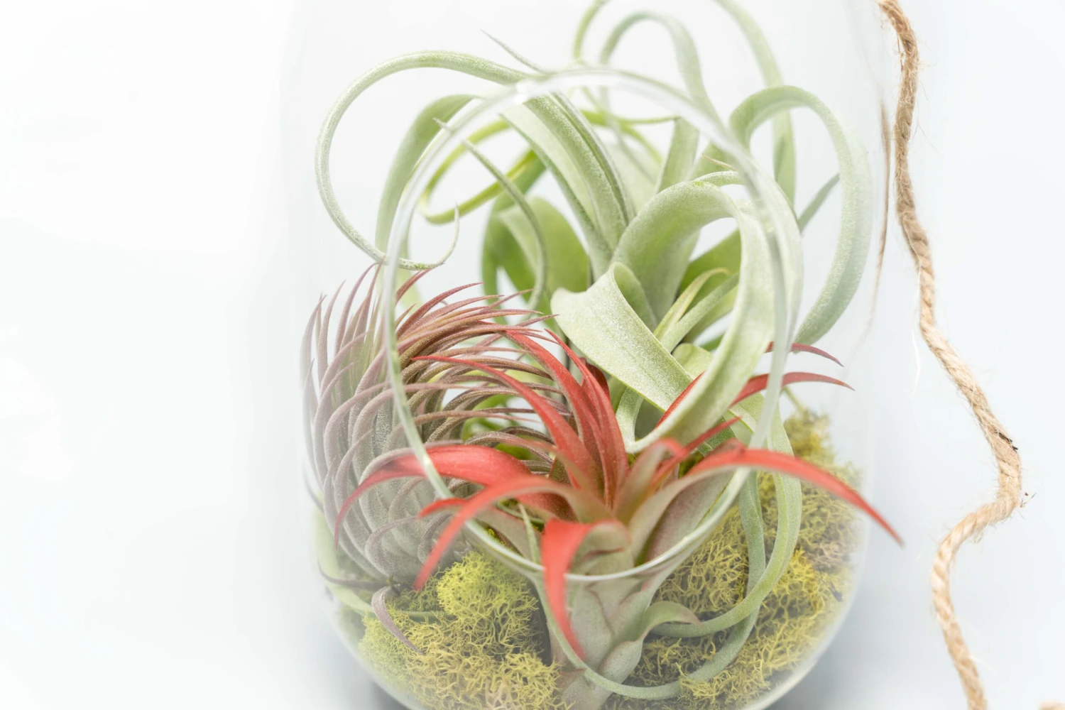 Our glass capsule terrarium is the perfect modern air plant display. With its unique tall shape, it is sure to be eye catching. Hang this terrarium from its loop or set on any flat surface. This kit comes complete with three assorted tillandsia, moss and hemp string for hanging.
