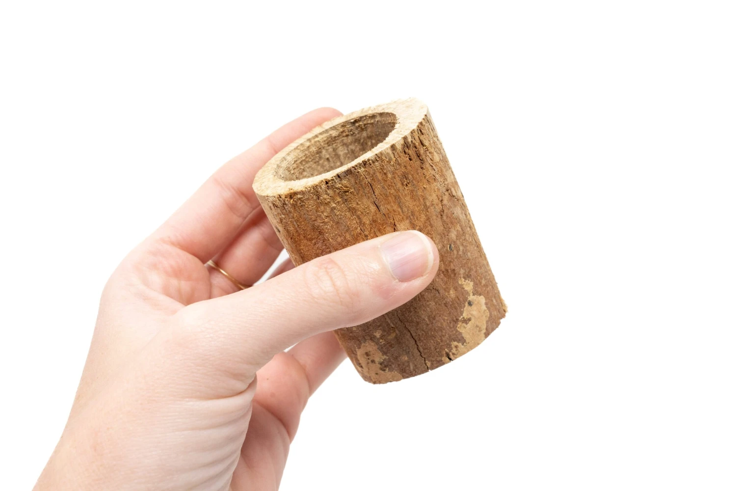 Our hand-carved driftwood containers are made from sun-bleached wood stumps and are a beautiful container for our Ionantha Rubra air plants. The wooden container is about 3 inches tall and 2.5 inches wide. There are some cracks and imperfections in the wood as every piece is unique.