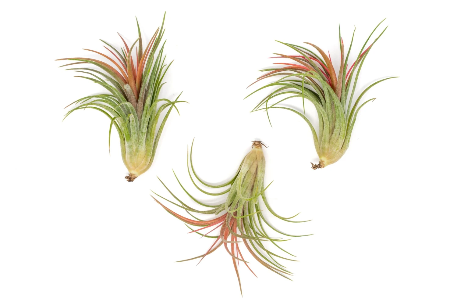 Ionantha Brachycaulos Victoriana is a hybrid air plant of the Velutina Brachycaulos and the common Ionantha species. The Velutina parent brings sturdiness and height while the Ionantha enhances blooming and vivid coloration. When in bloom, they blush pink with dark purple flowers to attract hummingbirds and other pollinators.